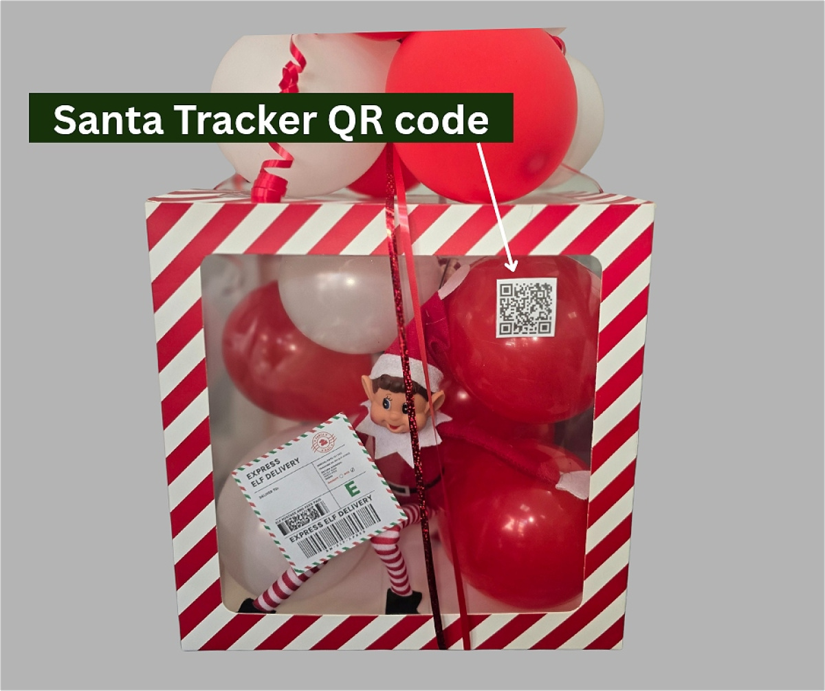This naught elf is trapped in a clear box topped with a giant elf topper.